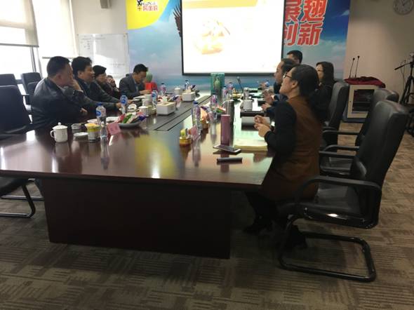1月21日,纺织工贸集团常务副总经理葛伟志带队,党委副书记丘海澜、财务总监陈国栋、副总经理关勇、办公室主任刘妍一行5人前往兄弟公司鹰金钱食品集团总部参观拜访,并与鹰金钱领导班子座谈交流。