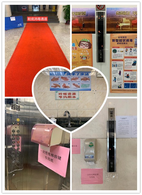 走进第一道大门有保安严格消毒、测体温、做登记,走过长长的鞋底消毒通道,迈入电梯有抽纸供按键使用,进入办公室的指纹开门为了减少接触式传染也改成门禁卡,出大门临时开辟了独立通道,整栋大楼无死角清扫、全方位消毒,每个显眼的公共空间都贴上了防疫宣传标语。短短几天时间,你们为广德大厦筑牢了疫情防控安全网,为集团复工做好了全面的保障,让我们毫无后顾之忧放心复工返岗。感谢你们!