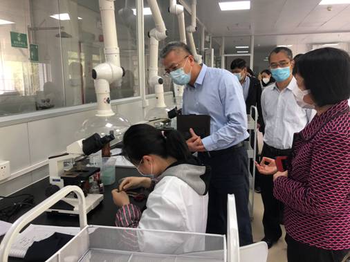 4月16日下午,广州轻工集团监事会主席张智勇、副总经理陈家园到广州轻工研究院调研。轻工研究院董事长钟炼军、副总经理杨梅、总经理助理麦永光以及部门负责人陪同走访园区和纺织品、无纺布、土工材料及箱包鞋检测实验室 。