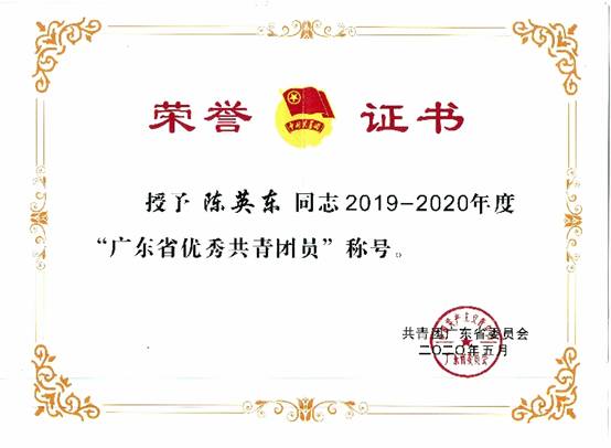 喜报:广州化工进出口有限公司陈英东荣获2019-2020年度“广东省优秀共青团员”称号