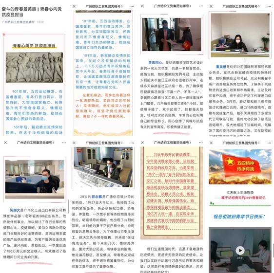 团委以“青春心向党 抗疫显担当”为主题,精心筹划了一期微信推文,梳理了在疫情期间,或深入社区服务群众或坚守岗位默默奉献,满腔热血、紧跟党走的优秀青年事迹,突出展现了纺织青年有理想、有追求、勇担当的青春风采。此外,纺织团委还对2019-2020年度在共青团工作方面有突出贡献的集体和个人进行了评选,表彰了5个先进团组织、5名优秀共青团干部、24名优秀共青团员及9名青年岗位能手。通过树立先进典型,鼓励团员青年向先进看齐,更好地在公司形成比学赶超的氛围,切实发挥团员青年生力军和突击队的作用。