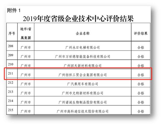 自2008年被认定为第九批广东省省级企业技术中心以来,作为广州地区唯一的国企纺织行业技术中心,连续11年通过省级企业技术中心评价。