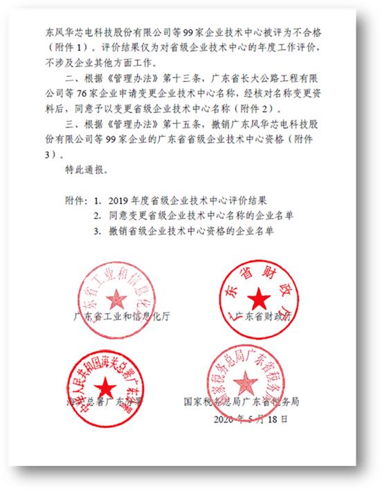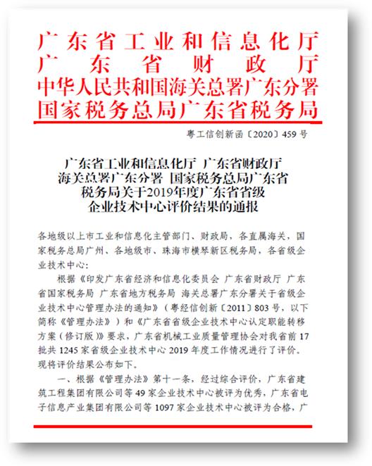 近日,广东省工业和信息化厅、广东省财政厅、海关总署广东分署、国家税务总局广东省税务局对2019年度广东省省级企业技术中心评价结果进行通报,华体会官方网站在线登录入口-华体会(中国)