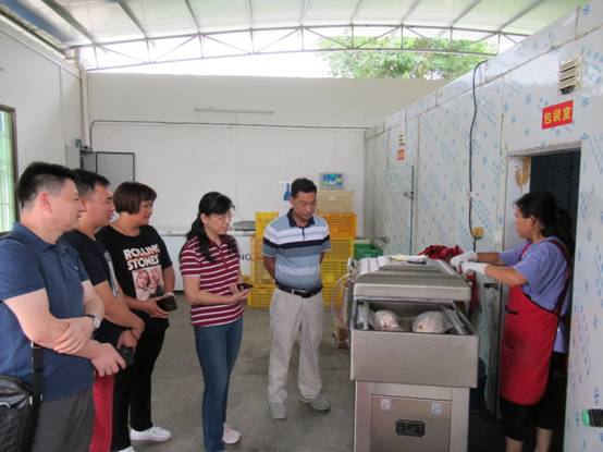 在驻村工作队的陪同下,丘海澜一行来到一家较有规模走地鸡养殖户。据养殖户介绍,他们刚开始养殖走地鸡时就注重消费群体的培养,从最开始的小规模供应,形成口碑后慢慢扩大规模,过程中不断完善自己的产业链,筹建加工场,设备从简易到逐步专业,随着销售量的逐年递增,形成一个由市场需求带动养殖、加工产业链的良性循环,取得了较好经济效益,非常值得推广学习。