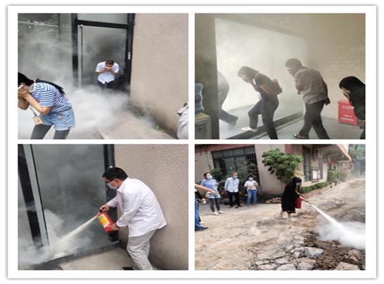 消防安全”警示教育片。同时,公司又组织了全体员工进行了消防逃生等演练活动。在消防演练中,发现“火情”后,各应急救援小组迅速集结,大家在统一指挥下迅速展开救援行动。全体员工立刻用毛巾捂住口鼻,沿疏散路线有秩序地撤离,到达指定地点汇合。仅用10分钟大家便安全撤离,同时将“明火”扑灭。