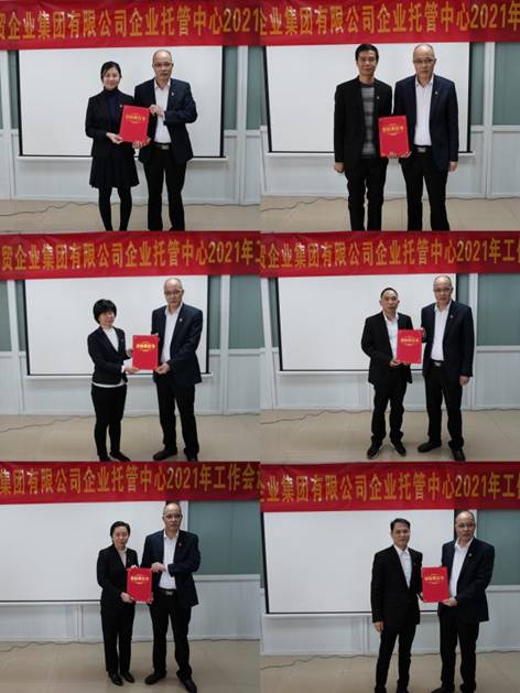 托管中心各部门、各党支部代表向中心领导递交2021年度党风廉政建设、经营考核责任书,强化责任担当,层层落实职责。