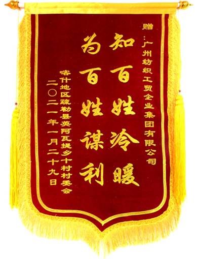 收到了来自新疆喀什地区疏勒县英阿瓦提乡十村村委会送来的锦旗,对公司为当地群众所做的善举表示感谢!