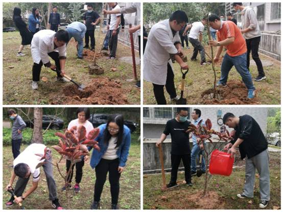 广轻研院团支部积极贯彻习近平总书记在2020年4月3日参加首都义务植树活动的讲话精神,在党总支的带领下,发动团员青年积极参与园区植树活动。大家分工明确、齐心协力,撸起袖子加油干,挥舞铁锹翻新土,扶植新苗列成行,呈现出一派热火朝天的劳动场面。通过这次活动,团员们不仅感受到了义务劳动的快乐,还在实践中更加深刻领会到了坚持走绿色发展道路的重大意义。