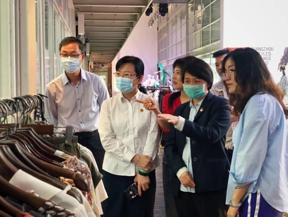 简玮仪一行参观了国贸部直播中心,对品牌中心新设计的产品给予了关注,并听取了国贸部本届云上广交会的参展情况汇报,对国贸部顺应数字化转型的趋势,积极运用新方法、新方式,全力探索传统贸易转型升级,取得积极成效给予了高度肯定。