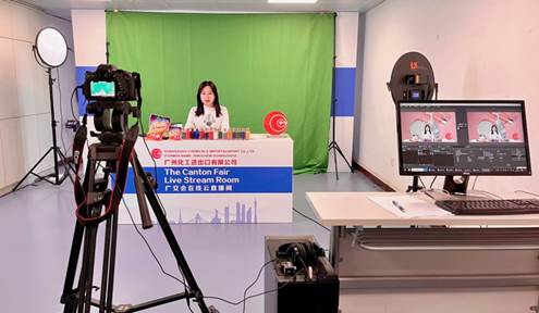 一是力求突出产品优势。伴随广交会“上云”,企业数字化转型也逐渐加速。广州化工早已为此提前深化运用线上展览和交易的操作流程、优化升级“云广交”直播间,竭力凸显了产品系列的丰富性和专业性。此外,广州化工在直播间增加了绿幕切屏效果,根据不同的产品和目标市场转换背景,既能美化直播环境,又能展现个性特色,有效提升直播效果。