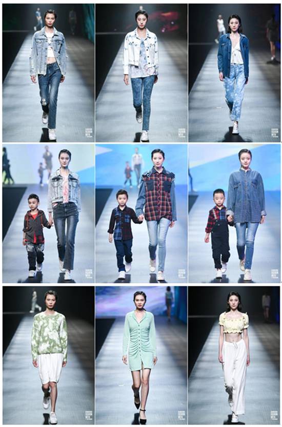 牛仔服装系列作为公司系列自主设计产品的“当家”代表,一出场便吸引了大家的目光。此次时装周上展出的牛仔服装是公司新推出的《源启自然》系列产品,践行绿色环保的设计理念,以天然抗菌、亲肤柔软的植物纤维功能性面料,全新拼接风格,让大人和孩子都能体验到把大自然穿在身上的感觉!时尚女装以绿色系为主色,包括质朴柔和的芹汁绿,温润的玉石绿辅以蛋糕黄色让整个主题更显温馨,加上智慧设计的创新工艺,置身现场,让人感受到春回大地的生机盎然和夏日清凉的青草气息!
