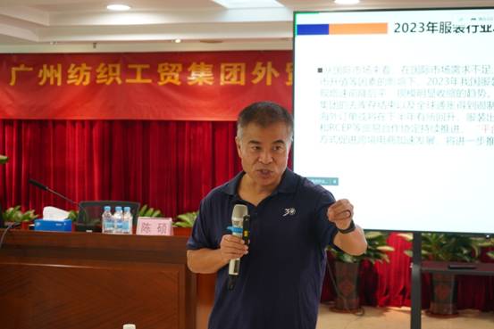 邀请了广东省外经贸厅贸易顾问、香港国际经济管理学院客座教授、商务部研究院及商务部培训中心“一带一路与自贸区”课题讲师陈硕进行“外贸趋势分析与客户开发技巧”专题培训。