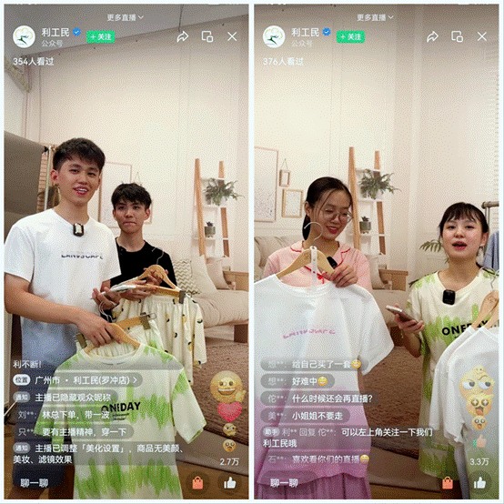 今年是中华老字号“利工民”品牌诞生100周年,作为华南地区唯一的贴身服饰类中华老字号,利工民始终秉承“匠心制造”的精神,为消费者提供优质的产品和服务。新员工各团队从选品、脚本制作、直播销售、直播控场各个环节全力以赴投身参与,直播内容精彩、节奏紧凑、互动气氛活跃。累计吸引观看人次3065,点赞数115957,评论数1288,成交销售额超出预期。