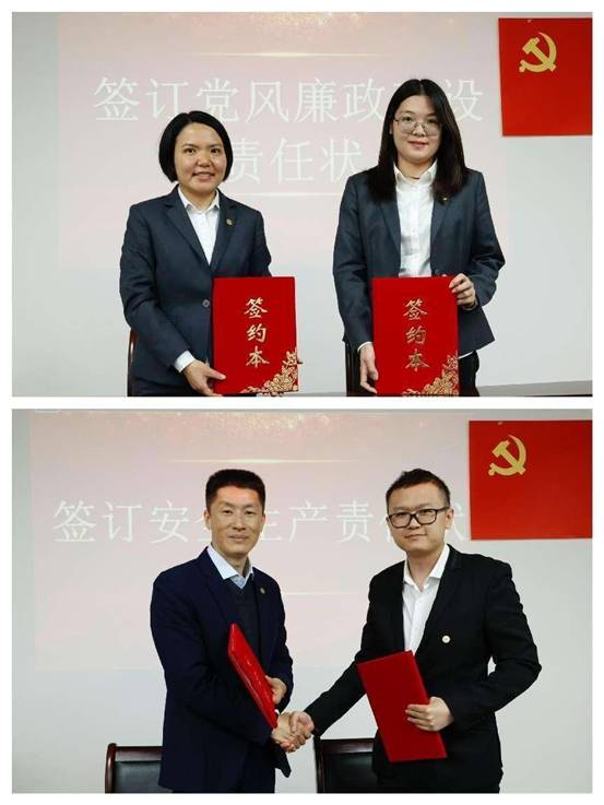 公司领导与部门代表分别签订2024年度党风廉政建设责任书、安全生产责任书。