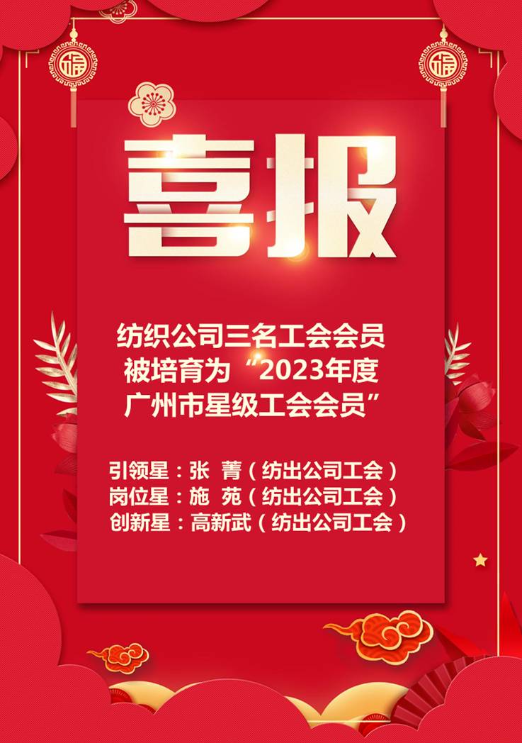 喜报:华体会官方网站在线登录入口-华体会(中国) 三名工会会员被培育为“2023年度星级工会会员”