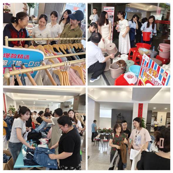 拓展课堂部分,线下集市与线上直播巧妙结合的纺织优品营销竞赛,不仅强化了新员工的营销意识,还锻炼了他们的实干能力、组织协调能力和团队合作精神。营销竞赛期间,新员工们分成四队,以团队为单位积极参与产品展示、促销互动及直播销售,现场气氛热烈,顾客参与度极高,充分展示了纺织优品的独特魅力,有效提升了品牌影响力。