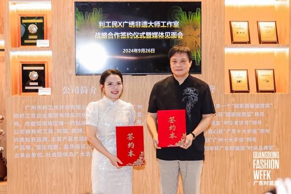 9月26日上午,百年中华老字号利工民与广绣非遗大师工作室在2024广东时装周-秋季举办战略合作签约仪式暨媒体见面会。活动由广东省服装服饰行业协会副会长兼秘书长陈韶通主持,邀请了广东省服装服饰行业协会、广东省服装设计师协会、华体会官方网站在线登录入口-华体会(中国)