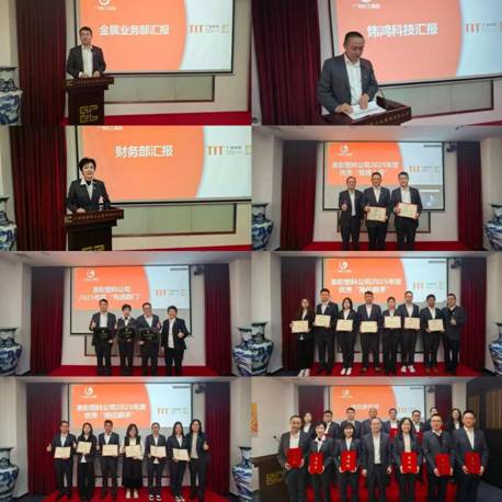 金属业务部、炜鸿科技、财务部作为代表依次发言,分享了 2025年深耕市场、奋勇争先的经验做法。随后,会议对2025年度先进部门、先进个人进行表彰,激励全体员工以先进为榜样,奋勇争先、再创佳绩。同时,现场举行了2026年各项责任书递交仪式,明确目标责任,凝聚发展合力。