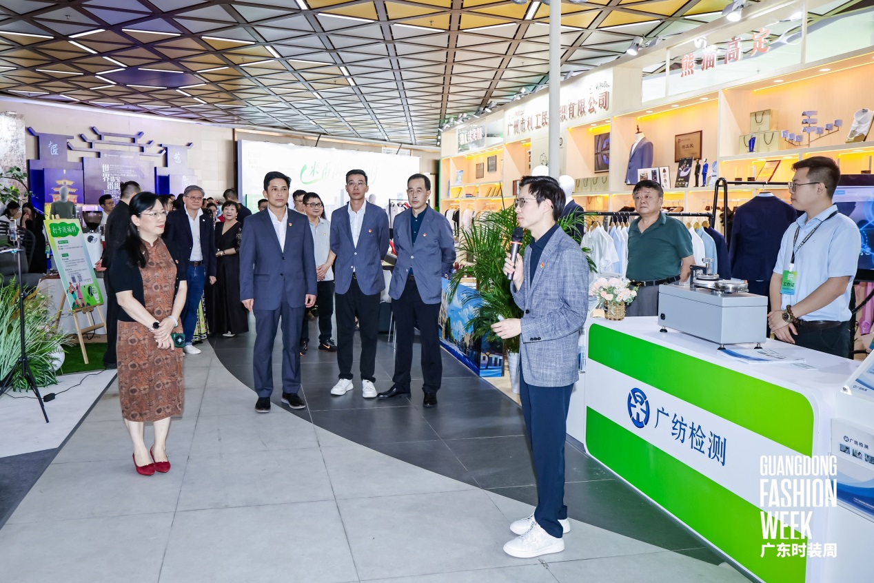 在本次时装周设立的利工民及广纺检测展台,就如何通过“党建 +”模式,持续探索时尚产业与党建工作的深度融合,携手打造“红色时尚”品牌,传承非遗文化,力争在行业内树立党建引领时尚产业创新发展的新标杆进行了深入探讨。与此同时,双方还联合举办了主题静态展,通过开放式空间展示高级定制系列产品、提供现场技术咨询服务,帮助观众深入了解时尚产品背后的技术奥秘,让观众近距离感受时尚与文化融合的魅力。
